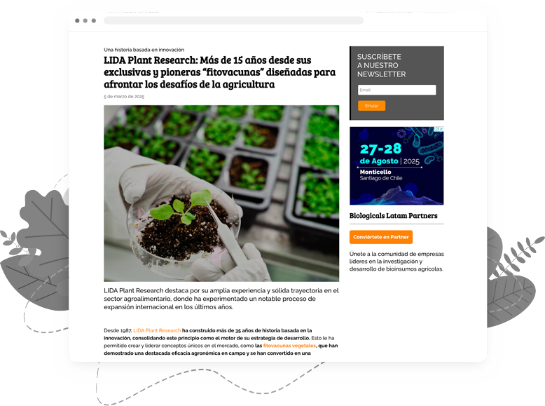 Conviértete en una Empresa Partner de Biologicals Latam, llega con tu mensaje a la comunidad mundial de bioinsumos y obtén los siguientes beneficios durante 12 meses: